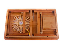 Бамбуковый столик для ноутбука UFT T25 - создаст комфортные условия для работы или отдыха. Стол изготовлен из экологически чистого материала - бамбука. Бамбук имеет массу преимуществ: он легкий, прочный, экологичный и долговечный. Ножки стола регулируются по высоте, имеется подставка для мышки, чашки. Все детали фиксации высоты столика изготовлены из качественного хромированного металла. Столешница способна менять угол наклона. Имеется также один выдвижной ящик для хранения мелких аксессуаров. Размеры столика: В сложенном виде (шхвхг): 540х350х50 мм; Столешница (шхв): 540х350 мм; Рабочая поверхность (шхв): 365х335 мм; Подставка под мышку: 180х350 мм; Предельная высота: 370 мм; Длина одной секции ножки: 290+80 мм. Характеристики столика: Тип столика: Экологичный бамбук. Накроватный, подставка. Возможное использование: На диване сидя, на кровати лежа, подставка на стол. Подходит ноутбук: 14, 15, 16,17, 18, 19; Охлаждение: Активное; Вентиляторы: 1; Питание: от порта USB; Дополнительные характеристики: Вес: 2,5кг; Максимальная нагрузка: 15кг; Цвет: коричневый; Поверхность: глянцевая; Особенности: Предельный угол наклона столешницы 45 градусов; Подставка под мышку; Наличие выдвижного ящика; Подставка под чашку или смартфона; Съемный упор для ноутбука; Бамбук легче любой древесины; Тверже дуба; Не рассыхается и не впитывает влагу. Комплектация: Столик для ноутбука, съемный передний упор для фиксации ноутбука, USB кабель питания. Материал: Столешница/ножки: Натуральный экологичный бамбук.