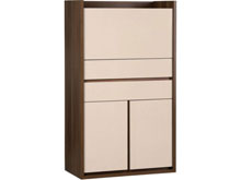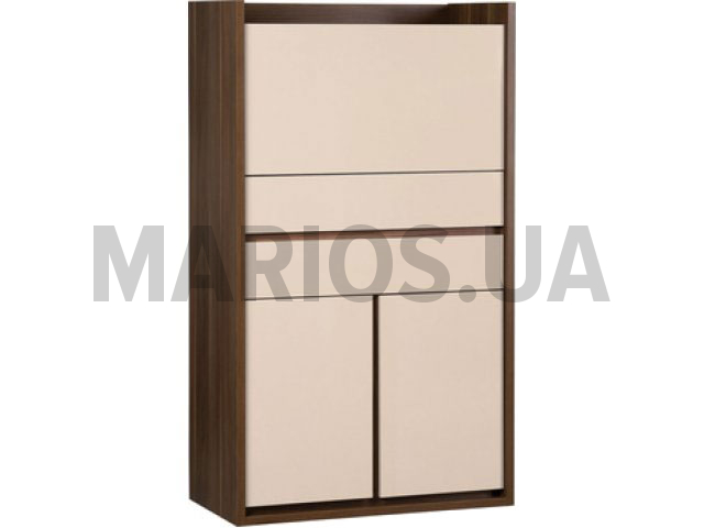 Буфет состоит из дверки - бара, который разделен на две части. Также имеет два выдвижных ящика для полотенец или скатертей и два шкафчика с полками. Характерный верх буфета, придает форме современности. Все ящики и шкафы не имеют ручек для открытия, оснащены системой push-up.