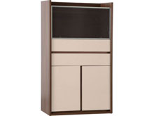 Буфет состоит из дверки с закаленным стеклом - бара, с характерными полосами в алюминиевой раме. Бар разделен на две части. Также имеет два выдвижных ящика для полотенец или скатертей и два шкафчика с полками. Характерный верх буфета, придает форме современности. Все ящики и шкафы не имеют ручек для открытия, оснащены системой push-up.