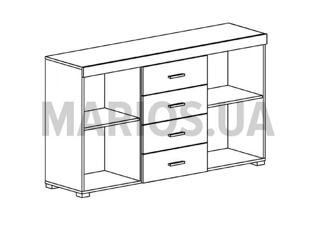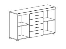 150.00см x 40.00см x 85.00см Характеристики мебели Материал ДСП Буфет Teano E. Наполнение: выдвижные ящики, шкафчики с полочками. Материал: ламинированная плита 16 мм. Кромка: 0,45 мм и 2 мм. Цвет: дуб каньон/ильм бергамо.