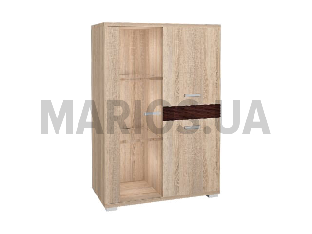 80.00см x 34.00см x 123.00см Характеристики мебели Материал ДСП Буфет Vizion A. Наполнение: полки. Материал: ламинированная плита ДСП, толщиной 16 мм. Кромка - 0,45 мм. На дверях установлен механизм плавного закрывания. Ручки - металлические.
