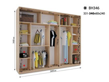 60.00см x 340.00см x 240.00см Характеристики шкафа Количество дверей4 двери Материал корпусаДСП 18мм, кромка ПВХ 0,5 и 2мм Оснащение12 полок, четыре двери (ДСП или зеркало), 4 отделения для тремпелей Форма шкафалинейный Четырехдверный шкаф-купе ВН346 - это очень модный и большой шкаф, который не только вместит в себя массу полезных вещей, но и украсит дизайн Вашего интерьера.В комплектацию модели входит: 12 полок, 4 отделения для тремпелей и четыре двери с профилем Элит в цвете серебро. Дополнительно можно заказать блок В35 или В50. Двери шкафа могут быть выполнены из ДСП, зеркальные, комбинированные или же с горизонтальными делениями. Размеры шкафа: глубина/ширина/высота - 60/331-340/240.Цена указана за шкаф стандартного размера шириной 340см. Шкаф с нестандартной шириной от 331см до 339см оплачивается дополнительно. Также возможно изготовление шкафа высотой 250см. Материалы, из которых изготовлен шкаф-купе ВН346: Корпус: ДСП 18мм; Фасады: зеркальные и панельные; Кромка: ПВХ 0.5 и 2мм; Зеркало: 4 мм; Штанга: микролифт металлический. Профиль: Элит или Квадратный. Цвет: серебро, золото светлое, бронза светлая, венге глянец. Раздвижная система: алюминиевая. Стандартные цвета в складской программе: венге магия; яблоня Локарно; ольха горная; дуб молочный; белый; орех лесной. Срок изготовления шкафов в стандартной цветовой гамме составляет 3-4 дня. Стандартные цвета, не входящие в складскую программу: орех темный. Срок изготовления шкафов в этих цветах составляет 10 дней. Нестандартные цвета: дуб арканзас темный. Шкафы в нестандартных цветах изготавливаются за дополнительную плату в течении 10 дней. Данные цвета не используются для фасадов.