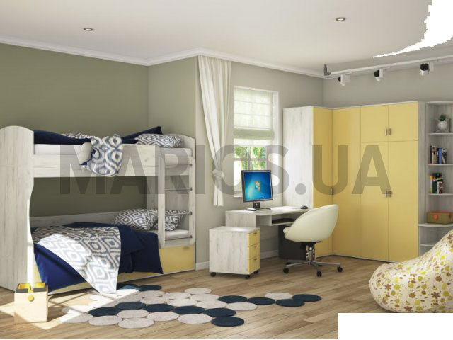 Характеристики мебели Материал ДСП Детская Домино. Включает в себя: Двухъярусную кровать. Спальное место: 90х200 см. Габариты: высота: 177 см. глубина: 93,2 см. Тумба выездная. Размеры: высота: 59,1 см. глубина: 47,5 см. Стол письменный. Размеры: высота: 74 см. глубина: 60 см. Шкаф угловой. Размеры: высота: 211,3 см. глубина: 96,8 см. Шкаф 80. Размеры: высота: 212,5 см. глубина: 52 см. Угловое окончание верх. Размеры: высота: 159,8 см. глубина: 31 см. Угловое окончание низ. Размеры: высота: 54,4 см. глубина: 52 см.