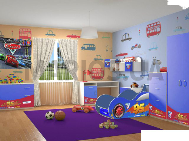 Характеристики мебели Материал ДСП Детская комната Драйв В состав комплекта входит: Книжная полка - 178х28х45 смКомод 3 - 88х49х89 смКомод 4 - 60х49х116Кровать односпальная с размером спального места 80х160 смПисьменный стол - 130х55х77Тумба прикроватная - 60х49х62 смГардеробный шкаф - 88х47,5 х200 см Кровать может быть изготовлена в двух сериях: серия Форсаж - когда внешнее оформление проводится с помощью отдельных разноцветных наклеек;серия Драйв – оформление изделия сплошной цельной наклейкой, покрытой слоем защитного ламината, предохраняющего рисунок от повреждений. На данную серию применяется надбавка к цене. Возможна комплектация с кроватью другого размера. Материал: ДСП.