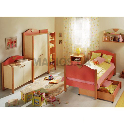 Характеристики мебели Материал Массив бука, шпон бука и явора, МДФ Детская система Эльф-1 поможет создать сказочную обстановку в детской комнате и перенести Вашего ребенка в волшебный мир. Даная серия объединяет все необходимое: кровать, прикроватную тумбу с двумя выдвижными ящиками, навесная полка поможет разместить детские книги, а этажерка благодаря своей небольшой ширине компактно дополнит интерьер. Шкаф и комод с выдвижными ящиками научат ребенка самостоятельно складывать вещи и станут первым шагом к независимости. Все элементы изготовлены из экологически чистых материалов: массива бука, шпоны бука и явора, МДФ. А красители и эмали используются на водной основе с заботой о безопасности здоровья Вашего ребенка. В цену входит кровать детская 70х140 и шкаф гардеробный детский, но по Вашему желанию можно заменить на кровать подростковую 90х200 и шкаф гардеробный подростковый. В комплект входит: кровать детская 70х140;тумба-пуф мобильная с двумя выдвижными ящиками;полка навесная;этажерка открытая узкая;шкаф гардеробный детский;комод с выдвижными ящиками.
