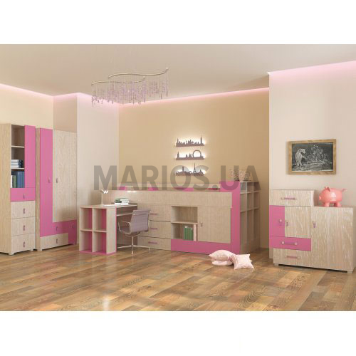 Характеристики мебели Материал ДСП Детская Snoopy. Все элементы гарнитура изготовлены из ламинированной плиты ДСП толщиной 16 и 22мм. На дверях установлен механизм плавного закрывания. На ящиках - роликовые направляющие. Ручки - силиконовые. Состоит из: Комод Snoopy G: длина - 100 см; глубина - 40 см; высота - 100 см. Кровать Snoopy P: длина - 257 см; ширина - 95 см; высота - 112 см. Спальное место: 80х190 см. Шкаф Snoopy A: длина - 80 см; глубина - 50 см; высота - 190 см. Стеллаж Snoopy F: длина - 45 см; глубина - 40 см; высота - 190 см.