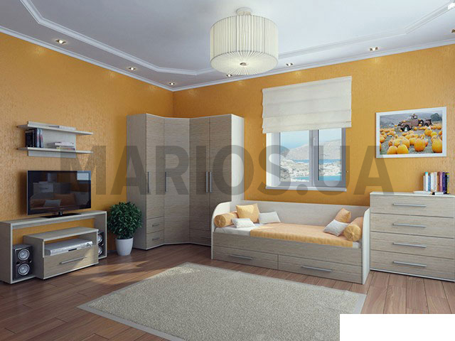 Детская система Карина-1 - это воплощение мечты Ващего взрослеющего чада. Набор мебели этой системы представлен таким образом, чтоб комната подростка была не только красивой и уютной, но еще и функциональной. В состав системы входит: кровать КМ-03 Карина под матрас размером 80х190см;комод КМ-10 Карина;шкаф КМ-06 Карина;угловой шкаф КМ-02 Карина;полка КМ-08 Карина;тумба под ТВ КМ-07 Карина;шкаф гарберобный КМ-1 Карина.
