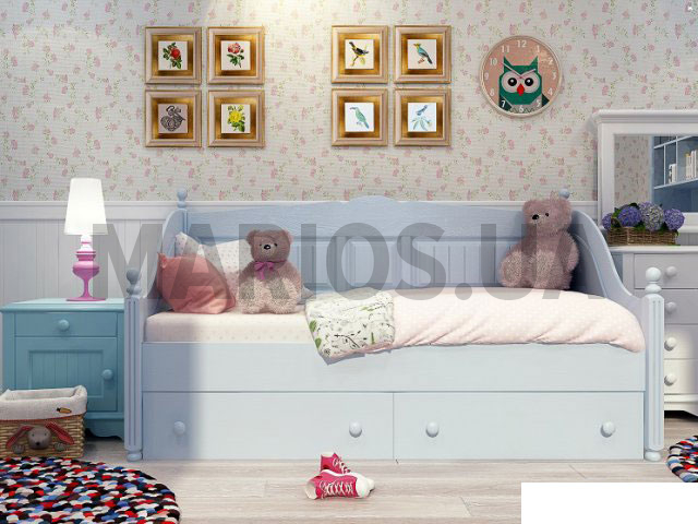 Характеристики постельного белья / текстиля Материал мебельный щит Детский спальный гарнитур Melanie Plus-4 включает в себя: прикроватную тумбу, кровать-диван, комод и зеркало. Диван-кровать Melanie Plus Размеры изделия: (Д/Ш/В) - 210/102,5/117 см. Спальное место - 90х200 см. Бельевой ящик. Размеры ящика: 197,8/87/22 см. Цвет: иний. Прикроватная тумба Melanie Plus Размеры изделия: (Д/Ш/В) - 61/45/60 см. Цвет: иний. Комод Размеры изделия: (Д/Ш/В) - 100/45/85 см. Цвет: белый. Зеркало Размеры изделия: (Д/Ш/В) - 93/9/65 см. Цвет: белый. Все элементы спального гарнитура изготовлены из окрашенного мебельного щита.