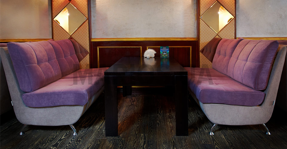 Диван "Чайкоф" при первом лишь взгляде манит присесть, расслабиться и насладиться атмосферой заведения. Объемность, крупные втяжки и утонченная игра цветовых контрастов отличают особый стиль данного изедлия от остального модельного ряда. Комплектация: кресло, диван двухместный, диван трехместный, соединительный элемент "угол",пуф. Особенности: декоративная прострочка чехлов в форме квадратов. Дополнительные опции: панель настенная. Рекомендуемые обивочные материалы: кожзамы мягкие, эластичные. Кожи тонкие. Ткани однотонные на трикотажной основе. Запрет на применение: кожи ПУ, крокко, буттеро, бикла, черато, лагуна. Ткани сыпучие, ворсистые (велюры), шениллы, "рогожка", с раппортом (узором), в полоску. Примечание: При комбинировании цветов обивочный материао должен быть одной серии (артикула), кожи одинаковой плотности.