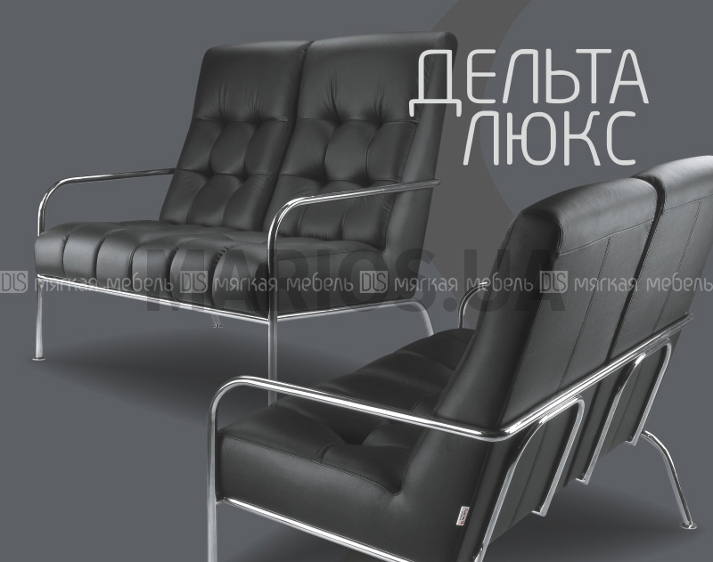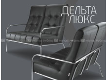 Диван "Дельта Люкс" отличается универсальным дизайном, дополненым квадратными втяжками, металлическими поручнями. Интересное дизайнерское решение сочетается с комфортом посадочного места и делает эту модель радостным приобретением в долгосрочной перспективе. Комплектация: кресло, диван двухместный. Особенности: каркас изготовлен из нержавеющей стали или стали с полимерным покрытием, спинка и сиденье оформлены декоративными втяжками в форме квадрата. Регулируемые опоры. Рекомендуемые обивочные материалы: кожзамы мягкие, эластичные. Кожи тонкие. Запрет на применение: кожи ПУ, крокко, буттеро, бикла. Ткани сыпучие, "рогожка", с раппортом (узором), в полоску.