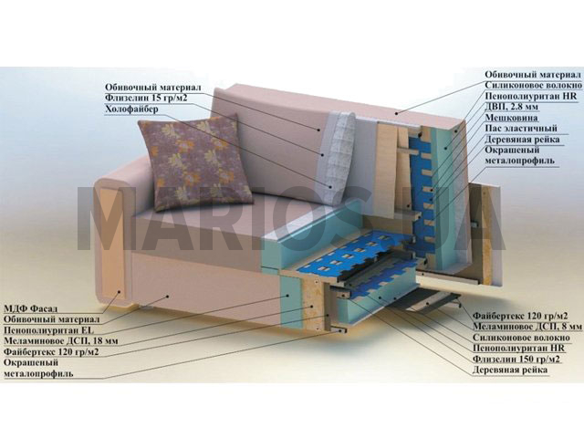 93.10см x 180.00см x 80.00см Вес0.00кг Характеристики дивана (кресла, тахты, углового дивана) Механизм трансформацииеврокнижкаОснова сиденияпенополиуретанРазмер спального места139х192Бельевой ящикесть Диван двухмесный Атлас оснащен механизмом трансформации - еврокнижка. Спальное место 139х192см. Под сиденьем находится большой ящик для хранения постельных принадлежностей. В основе наполнителя используются плотный пенополиуретан. Каркас изготовлен из металлопрофиля, древесины и ламинированного ДСП.