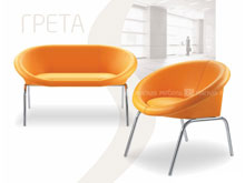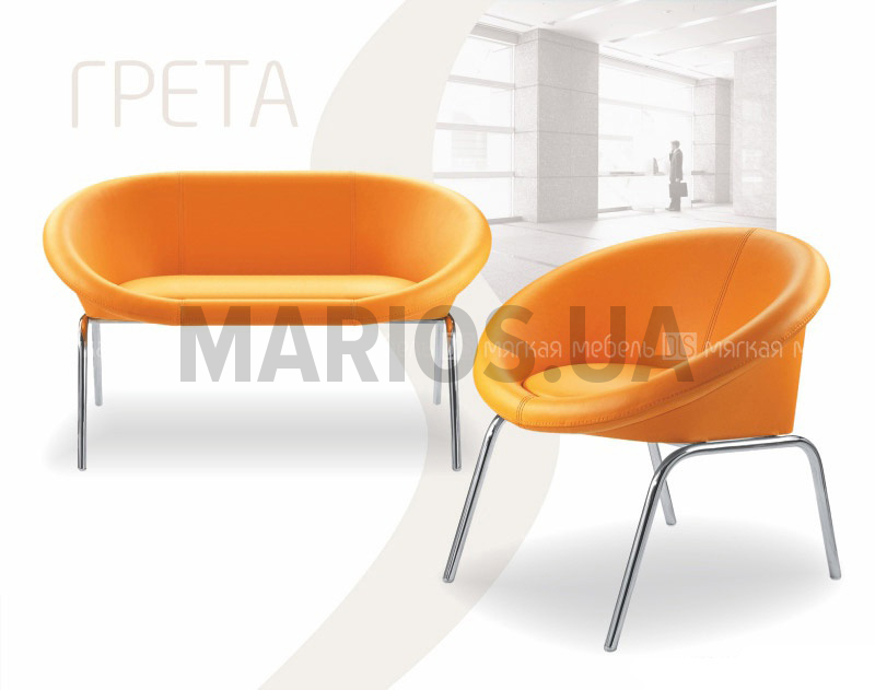 Диван "Грета" отличает лаконичное и стильное исполнение . Полукруглое сиденье с завышенными бортами, длинные металлические ножки делают дизайн оригинальным и универсальным. Комплектация: кресло, диван двухместный. Особенности: каркас изготовлен из нержавеющей стали или стали с полимерным покрытием, регулируемые опоры. Дополнительные опции: панель настенная. Рекомендуемые обивочные материалы: кожзамы мягкие, эластичные. Кожи тонкие. Запрет на применение: кожи ПУ, крокко, буттеро, бикла. Ткани сыпучие, "рогожка", с раппортом (узором), в полоску. Примечание: возможна комбинация цветов обивочных материалов на каркасе и сиденьи.