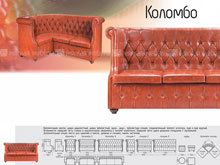 Диван "Коломбо" имеет выразительный внешний вид, сочетая в себе гладкую поверхность на местах для сиденья и втяжки, украшенные пуговицами, на остальных частях сиденья. Такая модель станет настоящей находкой в интерьере гостиницы, а также добавит шика в помещениях ресторанов и ночных клубов. Комплектация: кресло, диван двухместный, диван трехместный, одно-, двух-, трехместная секция, соединительный элемент "сектор", пуф-1, пуф-2. Особенности: передняя часть спинки и подлокотников оформлена в технике "капитоне". Передняя часть царги украшена складками с пуговицами. Дополнительные опции: место для хранения в кресле, диванах и секциях, панель настенная. Рекомендуемые обивочные материалы: кожзамы мягкие, эластичные. Кожи тонкие. Ткани однотонные. Запрет на применение: кожи ПУ, крокко, буттеро, бикла, черато, лагуна. Ткани сыпучие, ворсистые (велюры), шениллы, "рогожка", с раппортом (узором), в полоску. Примечание: возможна комбинация цветов обивочного материала на каркасах, декоративных накладках, подушках сиденья.