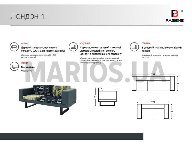 80.00см x 190.00см x 84.00см Вес 0.00кг Характеристики дивана (кресла, тахты, углового дивана) Механизм трансформациинет Основа сидениявысококачественный пенополиуретан Vita, Польша. Размер спального местанет Бельевой ящикнет Диван LondonКомпактный диван в стильном минималистическом исполнении. Каркас изготовленный на основе ламелей, экологически чистого войлока и сэндвича из высококачественного польского поролона-обеспечивает долговечность, комфорт и удобство. Обивка любой тканью на выбор.Характеристики:Длина: 190 смГлубина: 80 смВысота сидения: 46 смВысота спинки: 84 смКаркас: натуральное дерево, ДСП, ДВП.Опоры: дерево.Подушка сидения и спинки: высококачественный пенополиуретан Vita, Польша.