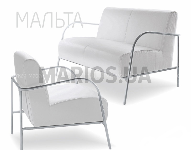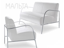 Диван "Мальта" имеет современный дизайн, изюминка которого в металлических полукруглых подлокотниках. Интересный внешний вид успешно сочетается с комфортным посадочным местом. Комплектация: кресло, диван двухместный, диван трехместный. Особенности: каркас изготовлен из нержавеющей стали или стали с полимерным покрытием, регулируемые опоры. Рекомендуемые обивочные материалы: все. Запрет на применение: ткани с раппортом (узором). Примечание: возможна комбинация цветов кожзамов, но только одной серии (артикула). Возможно применение ткани с узором при условии несоблюдения раппорта. Стандартные цвета окраски каркаса из черного металла с полимерным покрытием: хром, золото, серебро, белый, черный, темно-коричневый. Покраска каркаса в нестандартный цвет - 260 грн.