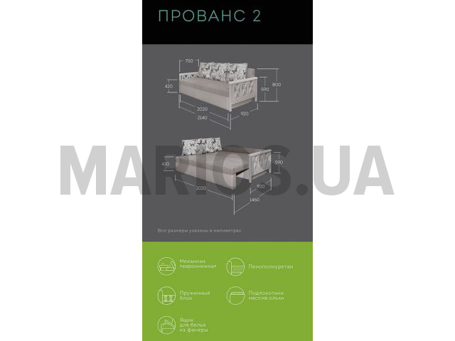 214.00см x 92.00см x 80.00см Вес0.00кг Характеристики дивана (кресла, тахты, углового дивана) Механизм трансформацииеврокнижкаОснова сиденияпружинный блок, пенополиуретанРазмер спального места146х202ВидрасскладнойКомплектация3 большие подушкиБельевой ящикесть Диван Прованс-2 - это раскладная модель, со спальным местом 146х202 см. Механизм трансформации - еврокнижка. В основе сидения используется пружинный блок и пенополиуретан. Подлокотники изготовлены из массива ольхи. Диван оснащен бельевым ящиком выполненным из фанеры.В обивке дивана Прованс-2 могут применяться ткани из каталога Обивочные ткани