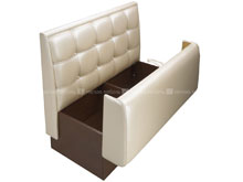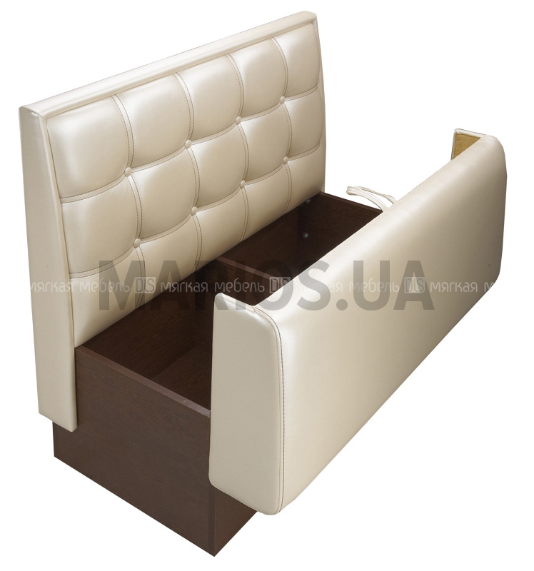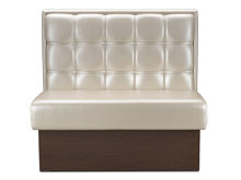 Диван "Тайм" - еще одна вариация на тему ресторанно-гостиничного интерьера. Благодаря изящному сочетанию квадратных втяжек и гладкой поверхности, а также деревянной основы, модель смотрится заведомо выиграшно. Комплектация: кресло, диван двухместный, диван трехместный, соединительный элемент "угол", пуф. Возможно исполнение "дабл". Особенности: спинка дивана оформлена декоративной двойной прострочкой в форме квадратов и пуговицами. Дополнительные опции: установка места для хранения в кресле и диванах; панель настенная. Рекомендуемые обивочные материалы: кожзамы мягкие, эластичные. Кожи тонкие. Запрет на применение: кожи ПУ, крокко, буттеро, бикла. Ткани сыпучие, "рогожка", с раппортом (узором), в полоску. Примечание: возможно применение кожи ПУ только на каркас спинки и сиденье (кроме декоративной вставки на спинке).