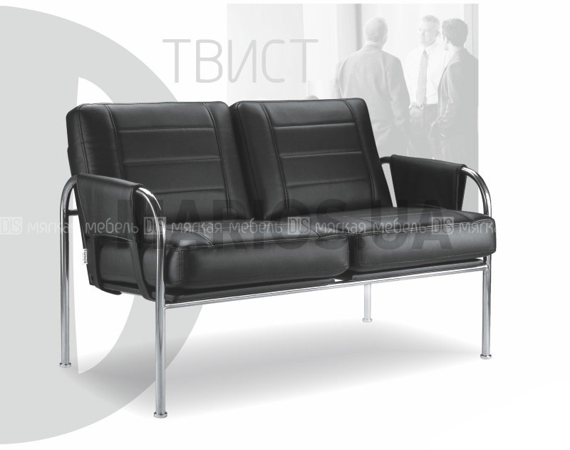 Диван "Твист" выполнено в строгом стиле, который разбавляют стильные подлокотники - металлические с кожаным чехлом. Сиденья имеют слегка рифленную форму и прострочены контрастными швами. Комплектация: кресло, диван двухместный. Особенности: Сиденье и спинка оформлены декоративной прострочкой. Каркас из нержавеющей стали или стали с полимерным покрытием, регулируемые опоры. Дополнительные опции: панель настенная. Рекомендуемые обивочные материалы: кожзамы мягкие, эластичные. Кожи тонкие. Ткани однотонные. Запрет на применение: кожи ПУ, крокко, буттеро, бикла. Ткани сыпучие, "рогожка", с раппортом (узором), в полоску. Примечание: стандартные цвета окраски каркаса из черного металла с полимерным покрытием: хром, золото, серебро, белый, черный, темно-коричневый. Покраска каркаса в нестандартный цвет - 260 грн.