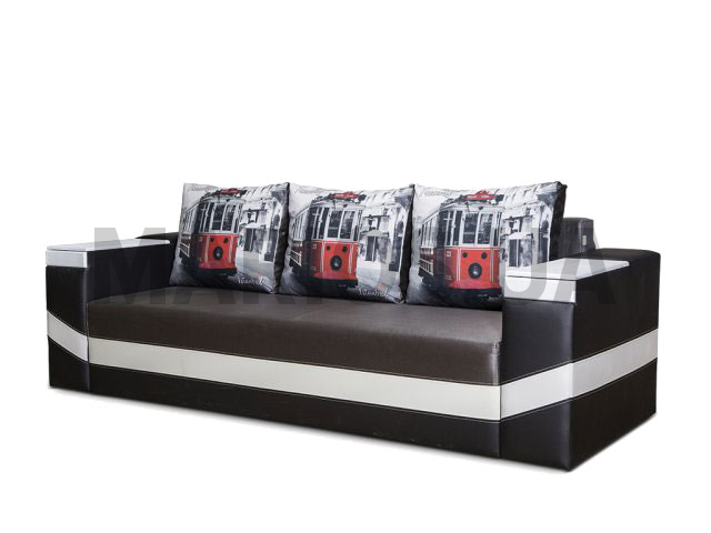 252.00см x 92.00см x 80.00см Вес0.00кг Характеристики дивана (кресла, тахты, углового дивана) Механизм трансформацииеврокнижкаОснова сиденияпеноплиуретан, пружинный блок "Боннель"Размер спального места146х202Бельевой ящикесть <em>Акционная цена указана за диван Урбан в комбинации "роксана комби мокко + аполена цветок большой + капри беж + браун".</em>Диван Урбан является одной их новейших моделей фабрики Диванофф. Мягкие подушки с печатью прекрасно сочетаются с контрастной отделочной строчкой дивана, а также придают современных вид. Механизм трансформации "еврокнижка" позволяет с легкостью превратить диван в двуспальную кровать с ортопедической поверхностью размером 146х202см. Ортопедичность дивана обеспечивается благодаря наличию пружинного блока "боннель", который также используют в изготовлении матрасов. Под сидением дивана Вы найдете ламинированный короб для белья. Отличительной особенностью дивана Урбан являются дополнительные ящики для постельных принадлежностей, расположенных под МДФ накладками подлокотников. Акционная стоимость дивана распространяется на модели в тканях из каталога, которые представлены на сайте. Чтобы создать свой неповторимый диван, можно воспользоваться каталогом тканей. А также, Вы сможете подобрать дизайн подушек, выбирая тот рисунок, который Вам понравится больше всего. В обивке дивана Урбан могут применяться ткани из каталога Обивочные ткани