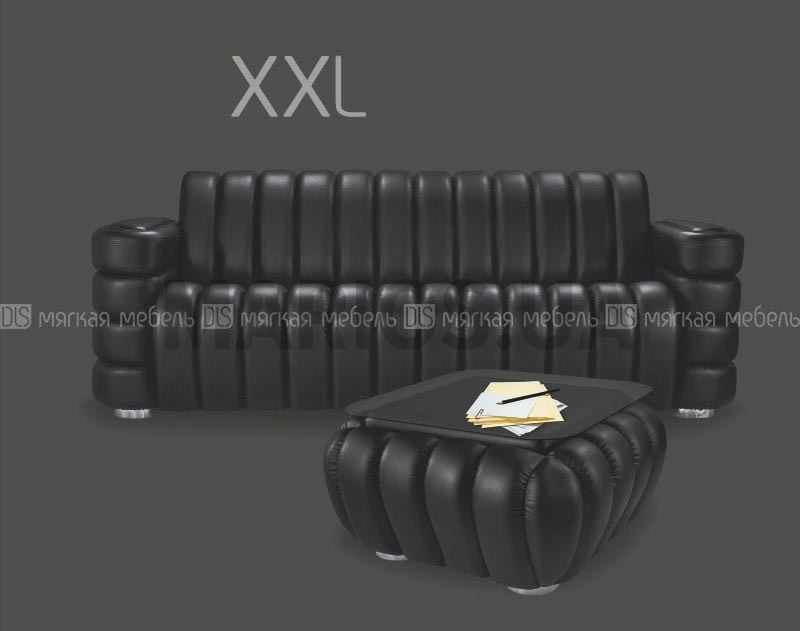 Оригинальный современный дизайн делает диван "XXL" яркой изюминкой интерьера. Мягкие линии, выпуклые элементы и классика модели гарантирует ее постоянную актуальность. Комплектация: кресло, диван двухместный, диван трехместный, пуф. Особенности: сиденья, спинка и подлокотники оформлены вертикальными и горизонтальными валиками из формированного ППУ. Опоры выполнены из нержавеющей стали. Дополнительная опция: установка стеклянной столешницы на пуф (в стандартную комплектацию не входит). Рекомендуемые обивочные материалы: кожзамы мягкие, эластичные. Кожи тонкие. Запрет на применение: кожи ПУ, крокко, буттеро, бикла. Ткани сыпучие, "рогожка", с раппортом (узором), в полоску. Примечание: стекло на пуф (800х800х8) - 605 грн.