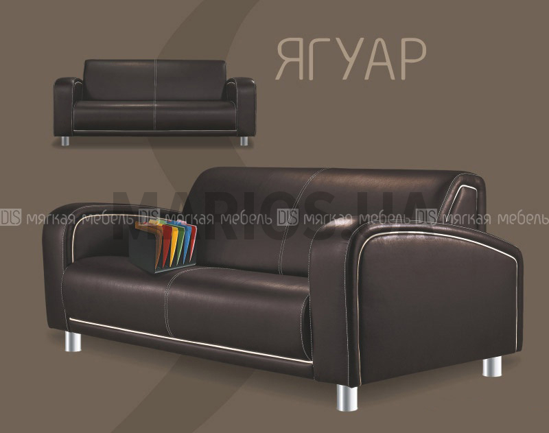 Диван "Ягуар" имеет интересный внешний вид - монотонная поверхность разбавлена контрастными швами, а в основе лежат полукруглые линии. Модель легко становится изюминкой любого помещения. Комплектация: кресло, диван двухместный, диван трехместный. Особенности: контрастный отделочный шов и кант. Рекомендуемые обивочные материалы: кожи ПУ, крокко, буттеро, бикла, черато, лагуна. Кожзамы мягкие, эластичные. Кожи тонкие. Ткани однотонные. Примечание: обивочные материалы декоративного канта должны быть одной серии (артикула) с основным материалом. Кожи ПУ, крокко, буттеро, бикла, черато, лагуна исключить для применения к декоративному канту.