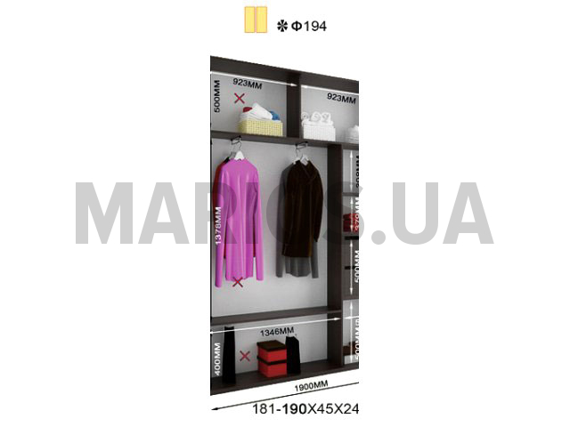 45.00см x 190.00см x 240.00см Характеристики шкафа Количество дверей2 двери Материал корпусаДСП 18мм, кромка ПВХ 0,5 и 2мм Оснащение6 полок, две двери (ДСП или зеркало), 1 отделения для тремпелей Форма шкафалинейный Двухдверный шкаф Фаворит Ф 194 240В комплектацию модели входит: 6 полок, одно отделения для тремпелей и две двери с профилем Элит в цвете серебро. Двери шкафа могут быть выполнены из ДСП, зеркальные, комбинированные или же с вертикальными делениями. Дополнительно можно заказать бельевой отдел, радиус Ф 45, радиус Ф 60, радиус Ф 35, радиус Ф 50, полку, трубу, стойку. За дополнительную плату. Размеры шкафа: глубина/ширина/высота - 45/181-190/240. Цена указана за шкаф стандартного размера шириной 190 см и высотой 240см. Шкаф с нестандартной шириной от 181 до 179 оплачивается дополнительно. Также возможно изготовление шкафа высотой 250 смМатериалы, из которых изготовлен шкаф: Корпус: ДСП 18мм; Фасады: зеркальные или ДСП; Кромка: ПВХ 0.5 и 2мм; Зеркало: 4 мм; Штанга: микролифт металлический. Профиль: Элит или Квадратный. Цвет: серебро, золото светлое, бронза светлая, венге глянец. Раздвижная система: алюминиевая.