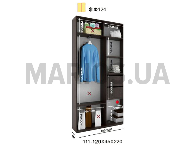 45.00см x 119.00см x 220.00см Характеристики шкафа Количество дверей2 двери Материал корпусаДСП 18мм, кромка ПВХ 0,5 и 2мм Оснащение6 полок, две двери (ДСП или зеркало), 1 отделения для тремпелей Форма шкафалинейный Двухдверный шкаф Фаворит Ф124 220В комплектацию модели входит: 6 полок, одно отделения для тремпелей и две двери с профилем Элит в цвете серебро. Двери шкафа могут быть выполнены из ДСП, зеркальные, комбинированные или же с вертикальными делениями. Дополнительно можно заказать бельевой отдел, радиус Ф 45, радиус Ф 60, полку, трубу, стойку. За дополнительную плату. Размеры шкафа: глубина/ширина/высота - 45/111-119/220.Цена указана за шкаф стандартного размера шириной 119 см и высотой 220см. Шкаф с нестандартной шириной от 107 до 118 оплачивается дополнительно. Также возможно изготовление шкафа высотой 250 см.Материалы, из которых изготовлен шкаф: Корпус: ДСП 18мм; Фасады: зеркальные или ДСП; Кромка: ПВХ 0.5 и 2мм; Зеркало: 4 мм; Штанга: микролифт металлический. Профиль: Элит или Квадратный. Цвет: серебро, золото светлое, бронза светлая, венге глянец. Раздвижная система: алюминиевая.