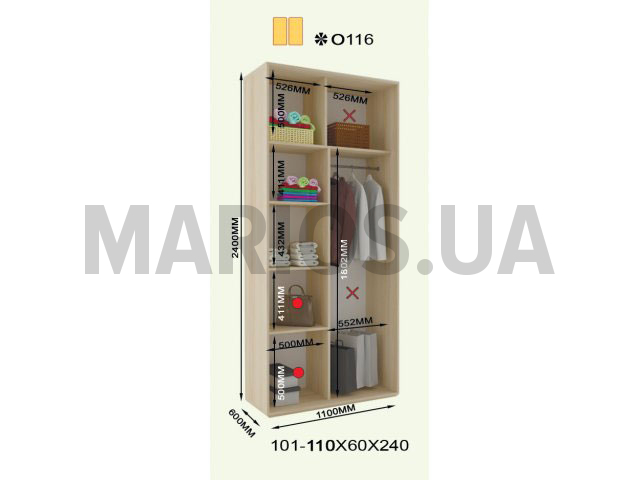 60.00см x 110.00см x 240.00см Характеристики шкафа Количество дверей2 двери Материал корпусаДСП 16мм, кромка ПВХ 0,5 и 2мм Оснащение6 полок, штанга для тремпелей, две двери (зеркало с пескоструем) Форма шкафалинейный Двухдверный шкаф-купе О-116 240 с пескоструем.В комплектацию шкафа входит: 6 полок, отделение для тремпелей и две двери с профилем Элит в цвете серебро. Дополнительно можно заказать блок В35 и В50. Размеры шкафа: глубина/ширина/высота - 60/101-110/240.Цена указана за шкаф стандартного размера шириной 110см. Шкаф с нестандартной шириной от 101см до 109см оплачивается дополнительно. Также возможно изготовление шкафа высотой 250см. Материалы, из которых изготовлен шкаф-купе О-116 240 с пескоструем: Корпус: ДСП 16мм; Фасады: зеркальные с пескоструем; Кромка: ПВХ 0.5 и 2мм; Зеркало: 4 мм; Штанга: микролифт металлический. Раздвижная система: алюминиевая.
