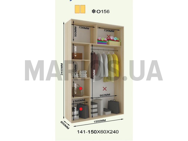 60.00см x 150.00см x 240.00см Характеристики шкафа Количество дверей2 двери Материал корпусаДСП 16мм, кромка ПВХ 0,5 и 2мм Оснащение6 полок, штанга для тремпелей, две двери (зеркало с пескоструем) Форма шкафалинейный Двухдверный шкаф-купе О-156 240 с пескоструем.В комплектацию шкафа входит: 6 полок, отделение для тремпелей и две двери с профилем Элит в цвете серебро. Дополнительно можно заказать блок В35 и В50. Размеры шкафа: глубина/ширина/высота - 60/141-150/240.Цена указана за шкаф стандартного размера шириной 150см. Шкаф с нестандартной шириной от 141см до 149см оплачивается дополнительно. Также возможно изготовление шкафа высотой 250см. Материалы, из которых изготовлен шкаф-купе О-156 с пескоструем: Корпус: ДСП 16мм; Фасады: зеркальные с пескоструем; Кромка: ПВХ 0.5 и 2мм; Зеркало: 4 мм; Штанга: микролифт металлический. Раздвижная система: алюминиевая.