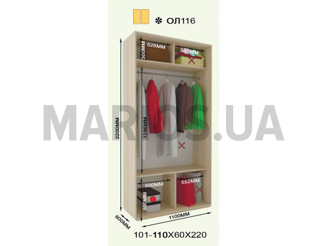 110.00см x 60.00см x 220.00см Характеристики шкафа Количество дверей2 двери Материал корпусаДСП 16мм, кромка ПВХ 0,5 и 2мм Оснащение4 полки, штанга для тремпелей, две двери (ДСП или зеркало) Форма шкафалинейный Двухдверный шкаф-купе ОЛ 116 220.В комплектацию шкафа входит: 4 полки, отделение для тремпелей и две двери с профилем Элит в цвете серебро. Двери шкафа могут быть выполнены из ДСП, зеркальные, комбинированные или же с вертикальными делениями. Размеры шкафа: глубина/ширина/высота - 60/101-110/220.Цена указана за шкаф стандартного размера шириной 110см. Шкаф с нестандартной шириной от 101см до 109см оплачивается дополнительно. Также возможно изготовление шкафа высотой 250см.Материалы, из которых изготовлен шкаф-купе ОЛ 116 220: Корпус: ДСП 16мм; Фасады: зеркальные и панельные; Кромка: ПВХ 0.5 и 2мм; Зеркало: 4 мм; Штанга: микролифт металлический. Профиль: Элит или Квадратный. Цвет: серебро, золото светлое, бронза светлая, венге глянец. Раздвижная система: алюминиевая.
