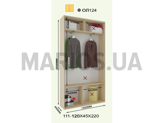 120.00см x 45.00см x 220.00см Характеристики шкафа Количество дверей2 двери Материал корпусаДСП 16мм, кромка ПВХ 0,5 и 2мм Оснащение5 полок, две штанги для тремплей, две двери (ДСП, зеркало) Форма шкафалинейный Двухдверный шкаф-купе ОЛ 124 220. Состоит из пяти полок и двух штанг для тремпелей. Двери шкафа могут быть выполнены из ДСП, зеркальные, комбинированные или же с вертикальными делениями. Размеры шкафа: глубина/ширина/высота - 45/111-120/220.Цена указана за шкаф стандартного размера шириной 120см. Шкаф с нестандартной шириной от 111см до 119см оплачивается дополнительно. Также возможно изготовление шкафа высотой 250см.Материалы, из которых изготовлен шкаф-купе ОЛ 124 220: Корпус: ДСП 16мм; Фасады: зеркальные и панельные; Кромка: ПВХ 0.5 и 2мм; Зеркало: 4 мм; Штанга: микролифт металлический. Профиль: Элит или Квадратный. Цвет: серебро, золото светлое, бронза светлая, венге глянец. Раздвижная система: алюминиевая.