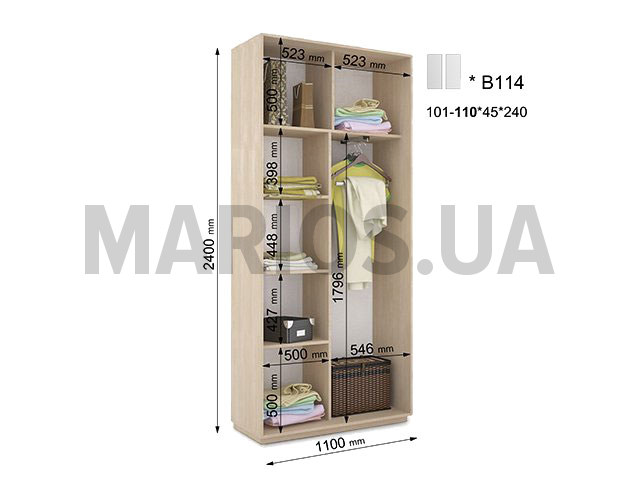45.00см x 110.00см x 240.00см Вес0.00кг Характеристики шкафа Количество дверей2 двериМатериал корпусаДСП 18мм, кромка ПВХ 0,5 и 2ммОснащение6 полок, две двери зеркальные с пескоструем, микролифтФорма шкафалинейный Двухдверный шкаф-купе В114 с пескоструем - это современный оригинальный шкаф, который не только вместит в себя массу нужных вещей, но и однозначно украсит Ваш интерьер. В комплектацию шкафа входит: 6 полок, отделение для тремпелей с микролифтом и две двери с профилем Элит в цвете серебро. Есть возможность установить блоки В35 и В50. Двери шкафа зеркальные, украшенные пескоструем, где Вы сможете выбрать узор из ста рекомендованных вариантов, или предложить свой макет для дизайна. Размеры шкафа: глубина/ширина/высота - 45/101-110/240. Цена указана за шкаф стандартного размера шириной 110см. Шкаф с нестандартной шириной от 101см до 109см оплачивается дополнительно. Также возможно изготовление шкафа высотой 250см. Пескоструйная обработка <span style="font-size:12px; - это холодная абразивная обработка поверхности стекла путем повреждения ее поверхности песком или иным абразивным порошком, распыляемым потоком воздуха, или декоративное матирование стекла. Материалы, из которых изготовлен шкаф-купе В114 с пескоструем: Корпус: ДСП 18мм; Фасады: зеркальные с пескоструем; Кромка: ПВХ 0.5 и 2мм; Зеркало: 4 мм; Штанга: микролифт металлический. Профиль: Элит или Квадратный. Цвет: серебро, золото светлое, бронза светлая, венге глянец. Раздвижная система: алюминиевая.Стандартные цвета в складской программе:венге магия; яблоня Локарно; ольха горная; дуб молочный; белый; орех лесной.Срок изготовления шкафов в стандартной цветовой гамме составляет 3-4 дня.Стандартные цвета, не входящие в складскую программу:орех темный.Срок изготовления шкафов в этих цветах составляет 10 дней.Нестандартные цвета:дуб арканзас темный.Шкафы в нестандартных цветах изготавливаются за дополнительную плату в течении 10 дней. Данные цвета не используются для фасадов.