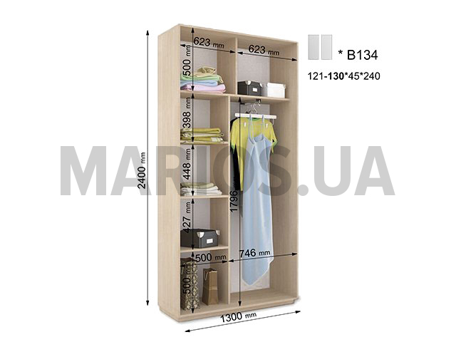 45.00см x 130.00см x 240.00см Характеристики шкафа Количество дверей2 двери Материал корпусаДСП 18мм, кромка ПВХ 0,5 и 2мм Оснащение6 полок, две зеркальные двери с пескоструем, микролифт Форма шкафалинейный Двухдверный шкаф-купе В134 с пескоструем - это превосходная модель, которая в наше время сохранит немало площади, вместит в себя массу полезных вещей и украсит Ваш интерьер.В комплектацию шкафа входит: 6 полок, отделение для тремпелей с микролифтом и две двери с профилем Элит в цвете серебро. Есть возможность установить блоки В35 и В50.Двери шкафа зеркальные, украшенные пескоструем, где Вы сможете выбрать узор из ста рекомендованных вариантов, или предложить свой макет для дизайна. Размеры шкафа: глубина/ширина/высота - 45/121-130/240. Цена указана за шкаф стандартного размера шириной 130см. Шкаф с нестандартной шириной от 121см до 129см оплачивается дополнительно. Также возможно изготовление шкафа высотой 250см. Пескоструйная обработка - это <strong style="font-size: 12px;">холодная абразивная обработка поверхности стекла путем повреждения ее поверхности песком или иным абразивным порошком, распыляемым потоком воздуха, или <strong style="font-size: 12px;">декоративное матирование стекла.Материалы, из которых изготовлен шкаф-купе В134 с пескоструем: Корпус: ДСП 18мм; Фасады: зеркальные с пескоструем; Кромка: ПВХ 0.5 и 2мм; Зеркало: 4 мм; Штанга: микролифт металлический. Профиль: Элит или Квадратный. Цвет: серебро, золото светлое, бронза светлая, венге глянец. Раздвижная система: алюминиевая. Стандартные цвета в складской программе: венге магия; яблоня Локарно; ольха горная; дуб молочный; белый; орех лесной. Срок изготовления шкафов в стандартной цветовой гамме составляет 3-4 дня. Стандартные цвета, не входящие в складскую программу: орех темный. Срок изготовления шкафов в этих цветах составляет 10 дней. Нестандартные цвета: дуб арканзас темный. Шкафы в нестандартных цветах изготавливаются за дополнительную плату в течении 10 дней. Данные цвета не используются для фасадов.