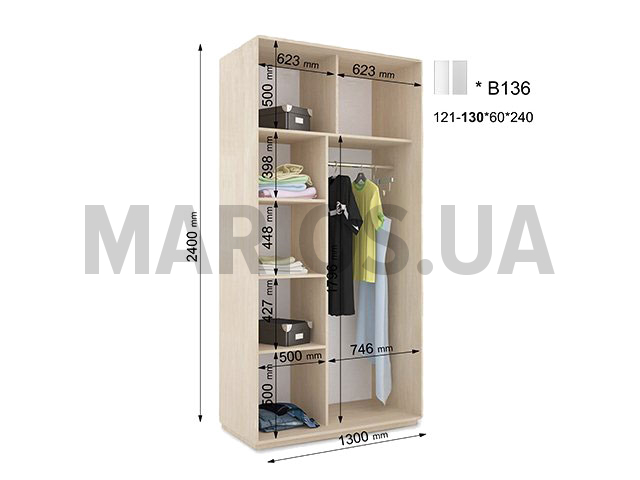 60.00см x 130.00см x 240.00см Характеристики шкафа Количество дверей2 двери Материал корпусаДСП 18мм, кромка ПВХ 0,5 и 2мм Оснащение6 полок, две зеркальные двери с пескоструем Форма шкафалинейный Двухдверный шкаф-купе В136 с пескоструем - это оригинальная модель, которая компактно вместит в себя много нужных вещей и украсит Ваш интерьер.В комплектацию шкафа входит: 6 полок, отделение для тремпелей и две двери с профилем Элит в цвете серебро. Дополнительно можно заказать блок В50.Двери шкафа зеркальные, украшенные пескоструем, где Вы сможете выбрать узор из ста предложенных вариантов, или предложить свой макет для дизайна. Размеры шкафа: глубина/ширина/высота - 60/121-130/240. Цена указана за шкаф стандартного размера шириной 130см. Шкаф с нестандартной шириной от 121см до 129см оплачивается дополнительно. Также возможно изготовление шкафа высотой 250см. Пескоструйная обработка - это <strong style="font-size: 12px;">холодная абразивная обработка поверхности стекла путем повреждения ее поверхности песком или иным абразивным порошком, распыляемым потоком воздуха, или <strong style="font-size: 12px;">декоративное матирование стекла.Материалы, из которых изготовлен шкаф-купе В136 с пескоструем: Корпус: ДСП 18мм; Фасады: зеркальные с пескоструем; Кромка: ПВХ 0.5 и 2мм; Зеркало: 4 мм; Штанга. Профиль: Элит или Квадратный. Цвет: серебро, золото светлое, бронза светлая, венге глянец. Раздвижная система: алюминиевая. Стандартные цвета в складской программе: венге магия; яблоня Локарно; ольха горная; дуб молочный; белый; орех лесной. Срок изготовления шкафов в стандартной цветовой гамме составляет 3-4 дня. Стандартные цвета, не входящие в складскую программу: орех темный. Срок изготовления шкафов в этих цветах составляет 10 дней. Нестандартные цвета: дуб арканзас темный. Шкафы в нестандартных цветах изготавливаются за дополнительную плату в течении 10 дней. Данные цвета не используются для фасадов.