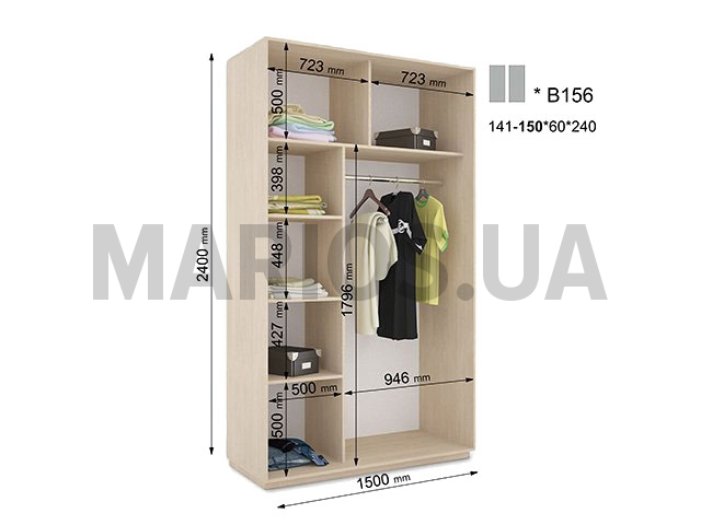 60.00см x 150.00см x 240.00см Характеристики шкафа Количество дверей2 двери Материал корпусаДСП 18мм, кромка ПВХ 0,5 и 2мм Оснащение6 полок, две зеркальные двери с пескоструем Форма шкафалинейный Двухдверный шкаф-купе В156 с пескоструем - это современная модель компактных размеров, которая вместит в себя много нужных вещей и украсит Ваш интерьер.В комплектацию шкафа входит: 6 полок, отделение для тремпелей и две двери с профилем Элит в цвете серебро. Дополнительно можно заказать блок В50.Двери шкафа зеркальные, украшенные пескоструем, где Вы сможете выбрать узор из ста предложенных вариантов, или предложить свой макет для дизайна. Размеры шкафа: глубина/ширина/высота - 60/141-150/240. Цена указана за шкаф стандартного размера шириной 150см. Шкаф с нестандартной шириной от 141см до 149см оплачивается дополнительно. Также возможно изготовление шкафа высотой 250см. Пескоструйная обработка - это <strong style="font-size: 12px;">холодная абразивная обработка поверхности стекла путем повреждения ее поверхности песком или иным абразивным порошком, распыляемым потоком воздуха, или <strong style="font-size: 12px;">декоративное матирование стекла.Материалы, из которых изготовлен шкаф-купе В156 с пескоструем: Корпус: ДСП 18мм; Фасады: зеркальные с пескоструем; Кромка: ПВХ 0.5 и 2мм; Зеркало: 4 мм; Штанга. Профиль: Элит или Квадратный. Цвет: серебро, золото светлое, бронза светлая, венге глянец. Раздвижная система: алюминиевая. Стандартные цвета в складской программе: венге магия; яблоня Локарно; ольха горная; дуб молочный; белый; орех лесной. Срок изготовления шкафов в стандартной цветовой гамме составляет 3-4 дня. Стандартные цвета, не входящие в складскую программу: орех темный. Срок изготовления шкафов в этих цветах составляет 10 дней. Нестандартные цвета: дуб арканзас темный. Шкафы в нестандартных цветах изготавливаются за дополнительную плату в течении 10 дней. Данные цвета не используются для фасадов.