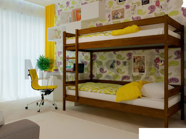 190.00см x 80.00см x 0.00см Характеристики мебели МатериалЩит бука Приобретая двухъярусную кровать Твикс под матрасы размером 80х190см, Вы не только экономите пространство комнаты, но и, используя натуральный материал, дарите Вашим детям спокойный и здоровый сон!Кровать Твикс изготовлена из экологически чистого щита бука и покрыта высококачественным полиуретановым лаком (Италия), который защищает поверхность кровати от царапин и других повреждений. На Ваш выбор предоставляется 5 цветов корпуса кровати: бук; орех; яблоко; красное дерево; венге. Кровать комплектуется ламелями с расстоянием между ламелями 6,5см. За дополнительную плату можно заказать ламели с расстоянием между ними 2,5 см.Кровать можно укомплектовать двумя ящиками, которые размещаются под кроватью.Вы также можете заказать защищающий бортик, который позаботится о безопасности Вашего ребенка.Вы можете укомплектовать кровать ортопедическими матрасами для комфортного и приятного сна. Размер матрасов для двухъярусной кровати Твикс<table border="1" cellpadding="5" cellspacing="1" rules="all" style="width: 175px; height: 52px;"><tbody> Размер матраса, см 90х190