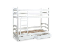 198.00см x 86.00см x 175.00см Вес0.00кг Характеристики мебели МатериалМассив бука. Двухъярусная кровать из бука 80х190 – удачный вариант, совместивший великолепную эстетику с высокой практичностью. Модель пользуется бешеной популярностью у детей и их родителей. Экологически чистый массив бука, из которого изготовлена кровать, имеет массу преимуществ перед другими породами древесины: небывалая прочность, долговечность, стойкость к растрескиванию. Верхний ярус надежно защищает ребенка от падения высокими бортиками. Лесенка, ведущая наверх, прочно закреплена и имеет устойчивые ступеньки. Кровать оснащена двумя бельевыми ящиками для постельного белья или игрушек. Сочетая кровать с <a href="https://www.mebelok.com/matrasi-ortop/filter-14-82/15-97/ качественным ортопедическим матрасом, Вы создадите идеальное спальное место для подростка.Размеры спального места кровати двухъярусной тонированной с ящиками: Длина, см Ширина, см190 80Габариты кровати: 198х86 см. Высота: 175 см.