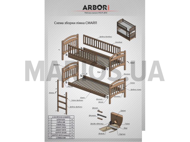 198.50см x 88.00см x 170.00см Характеристики мебели Материал Сосновый щит Кровать Смайл сосна 80х190 – рациональное решение для семьи, в которой только планируется второй ребенок. Кроватка двухъярусная, поэтому один ярус Вы можете до поры переоборудовать в игровую зону. Ваш малыш будет в восторге от такого личного уголка! Изделие изготовлено из натурального соснового щита в строгом соответствии со стандартами и требованиями, предъявляемыми к мебели для детей. А при необходимости эту двухъярусную кровать трансформировать в две отдельностоящие кровати. Вашему вниманию представлен огромный выбор цветов: лак;ольха;яблоня локарно;орех;темный орех;венге;белый. За отдельную плату возможна комплектация бельевым ящиком во всю длину кровати, его можно также использовать и как дополнительное спальное место. В стоимость входит цена за кровать и два комплекта ламелей, толщиной 8мм и расстоянием между ними 5,8-6 см. Изделие покрыто гипоаллергенным лаком итальянского производства. Сочетая кровать с качественным ортопедическим матрасом, сон Ваших детей будет здоровым и сладким. Размеры спального места кровати Смайл сосна 80х190 Длина, см Ширина, см 190 80 Габариты кровати: 88х198,5см. Высота верхнего яруса: 85см, высота нижнего яруса: 85см. Общая высота : 170см.