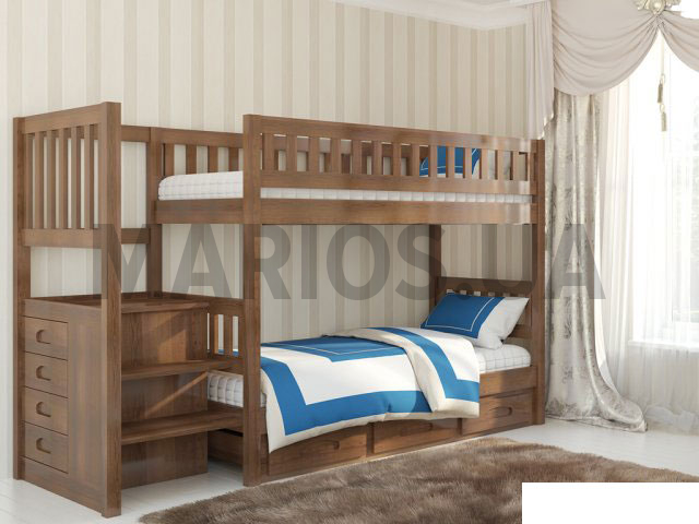 260.00см x 98.00см x 170.00см Характеристики мебели Материал массив натурального дерева (ольха) Двухъярусная кровать Владимир 90х200 впечатляет стильным дизайном и великолепной функциональностью. Она не оставит равнодушными ни маленьких эстетов, ни их родителей. Материалом изготовления является массив натурального дерева ольхи - идеальное сочетание экологической чистоты и эстетического совершенства. За дополнительную плату это может быть массив ясеня или дуба. Кровать сконструирована с учетом всех требований эргономики и техники безопасности. Модель оснащена удобными, широкими ступенями, сводящими вероятность падения к абсолютному минимуму. Кровать укомплектована выдвижными ящиками, расположенными под ступенями лестницы, а также вместительными ящиками для белья и игрушек в нижней части кровати. Для безопасности ребенка, верхний ярус оборудован защитными бортиками. Вашему вниманию представлен следующий выбор цветов: орех;светлый орех;темный орех;яблоня;груша;ольха;бук;венге. За дополнительную плату возможно изготовление кровати нестандартного размера, а также предоставляется возможность выбрать нестандартный цвет из коллекции палитры RAL. Изделие покрыто безопасным гипоаллергенным лаком. Сочетая кровать с качественным ортопедическим матрасом, сон Ваших детей будет крепким и здоровым. Размеры спальных мест кровати Владимир Длина, см Ширина, см 200 90 Габариты кровати: 98х260см. Высота: 170см.