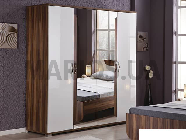 60.80см x 200.00см x 207.00см Вес0.00кг Характеристики мебели МатериалЛДСП Гардероб Фрида (Frida) выполнен в стиле модерн, имеет 4 распашные двери и зеркала. Гардероб Фрида очень вместительный и устойчивый. А зеркала позволят Вам тут же оценить выбранный образ. Модель станет качественным и практичным выбором в интерьере Вашей спальни. Цена указана за гардероб Фрида в цвете Wallnut / Tiepolo. Материалом корпуса и фасада гардероба Фрида является ламинированная ДСП. Цвет: белый.Параметры гардероба Фрида (Frida) Ширина, см Длина, см Высота, см200 60,8 207