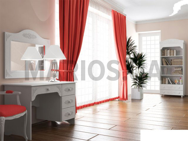 Характеристики мебели Материал ДСП, МДФ, ПВХ Белый гарнитур Ассоль-1 станет прекрасным приобретением для обустройства женского уголка спальни или гостиной. Стол-трюмо АС-06 Ассоль станет настоящим таинственным храмом, в котором хранятся секреты тайного женского оружия – красоты, а зеркало АС-08 Ассоль поможет в ее создании. Пенал АС-03 Ассоль дополнит интерьер своей функциональностью, в нем Вы сможете разместить книги или просто элементы декора. В комплект Ассоль-1 входит: Стол-трюмо АС-06 Ассоль;Зеркало АС-08 Ассоль;Пенал АС-03 Ассоль. Размеры стола-трюмо АС-06 Ассоль: ширина: 110 см;высота: 74,5 см;глубина: 60 см. Размеры зеркала АС-08 Ассоль: ширина: 100 см;высота: 80 см;глубина: 3,2 см. Размеры пенала АС-03 Ассоль: ширина: 83, 2 см;высота: 210 см;глубина: 41, 6 см. Материалы: модули изготовлены из ДСП 16 мм;применяются МДФ фасады;торцы деталей обклеиваются ПВХ-кромкой. Особенностью является применение технологии объемного нанесения узора га фасад из МДФ. Украшением гарнитура будут фигурные ручки. Вы также можете приобрести каждый элемент системы Ассоль по отдельности.