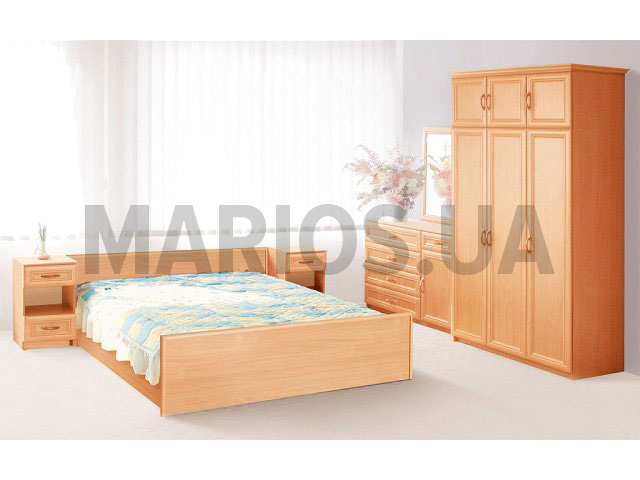 Характеристики мебели Материал ДСП Гарнитур для спальни Вояж В комплект входит: Кровать двуспальная Вояж 160х200Тумба прикроватная Вояж-2 - 2шт.Шкаф гардеробный Вояж 3ДКомод Вояж элитЗеркало Вояж Возможно изготовление в таких цветовых вариантах: Фасад - ДСП бук, яблоня Корпус - ДСП бук, яблоня Вояж - недорогая модульная система с современным дизайном.