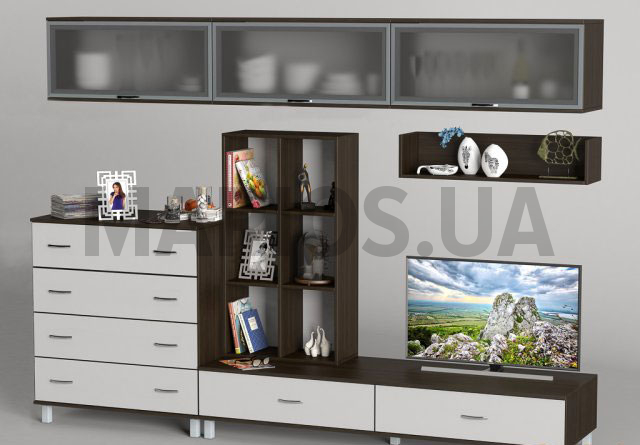 45.00см x 270.00см x 205.00см Характеристики мебели Материалламинированное ДСП Гостиная-9 Вмещает в себя: Тумба под телевизор - 238/2; Пенал - 111/1 (3 шт); Пенал - 120/2. Материалы: кромка меламин, но за дополнительную плату возможна кромка ПВХ. Габаритные размеры: Ширина - 270 см. Глубина -45 см. Высота - 205 см.