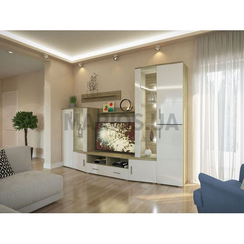 285.00см x 50.00см x 198.00см Характеристики мебели МатериалДСП, МДФ стекло Гостиная Альба Изготавливается в цвете белый глянец/трюфель, поверхность комплекта глянцевая.Гостиная продается комплектом. Комплект мебели состоит из: Витрина левая 85х134х35 Витрина правая 85х198х35 Тумба 115х39х50 Полка 115х20х21