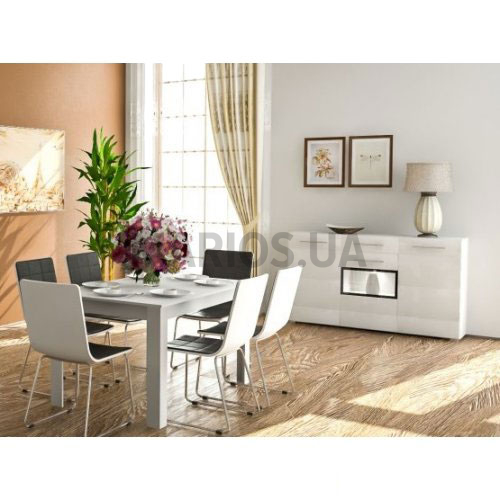 Характеристики мебели Материал ДСП, МДФ Гостиная Barry-4. Состоит из: Стол обеденный Barry L. Размеры: ширина: 120 см; глубина: 90 см; высота: 75 см. Комод Barry C. Размеры: ширина: 163 см; глубина: 35 см; высота: 97 см. Материал: корпус - ДСП ламинированное, фасад - МДФ.
