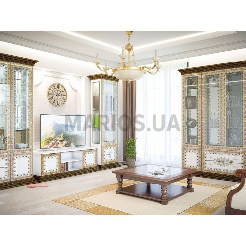 Характеристики мебели Материал лакированное ДСП с художественной печатью Гостиная Белладжио-2 Гостиная может быть изготовлена в таких цветовых вариантах: цвет корпуса - ДСП белый/ черныйцвет фасадов - ДСП белый/ черный, лак. художественная печать Гостиная продается комплектом. В комплект входит: Витрина большая - 188х45х227Витрина 1Д - 71х45х227Витрина 2Д - 99х45х227Тумба под ТВ - 160х46х55