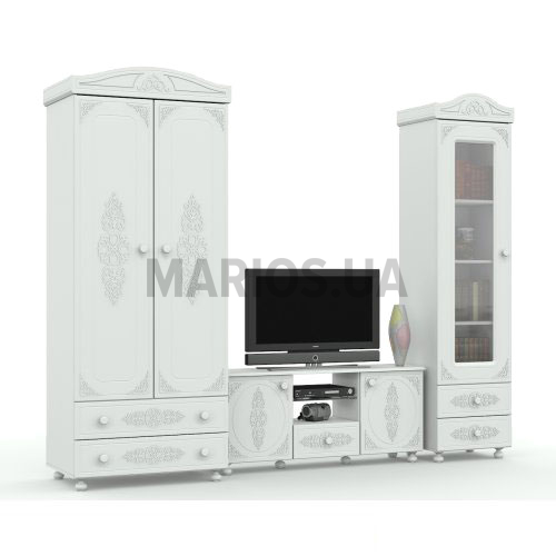 Характеристики мебели Материал ДСП, МДФ Гостиная Богема. Все элементы изготовлены: корпус - ДСП, фасад - МДФ. Цвет: белый. В себя включает: Тумба ТВ Богема: ширина - 125 см; высота: 58 см; глубина - 35 см. Пенал Богема 40 открытый: ширина - 43,2 см; высота: 221 см; глубина - 51,6 см. Пенал Богема 80: ширина - 83,2 см; высота: 221 см; глубина - 51,6 см.