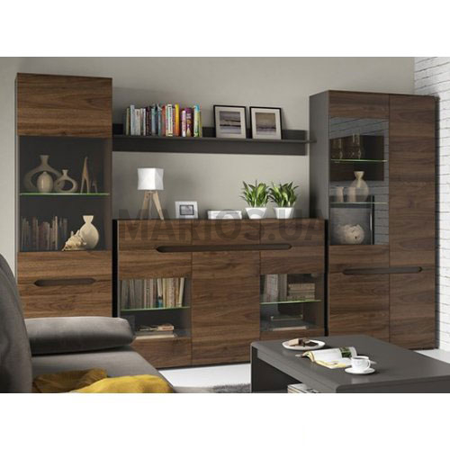 Характеристики мебели Материал ДСП, МДФ Гостиная Эльпасо Материал: Корпус: ДСП. Фасад: МДФ. Доступные цвета: дуб сан-ремо светлый; дуб сан-ремо светлый/белый; дуб сан-ремо светлый/орех колумбия; серый вольфрам/белый; серый вольфрам/орех колумбия; серый вольфрам/дуб сан-ремо светлый. В комплект входит: Витрина REG1W1D Размер: Длина: 60 см Высота: 200 см Глубина: 41 см Комод KOM2W1D3S Размер: Ширина: 150 см Высота: 104.5 см Глубина: 41.5 см Полка POL/150 Размер: Ширина: 150 см Высота: 20 см Глубина: 19.5 см Витрина REG1W3D/20/9 Размер: Длина: 90 см Высота: 200 см Глубина: 41 см Стол журнальный LAW/110 Размер: Длина: 110 см Высота: 46 см Глубина: 65 см