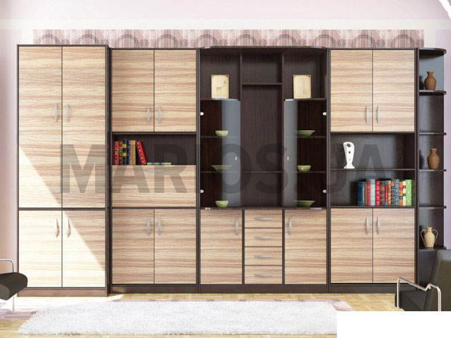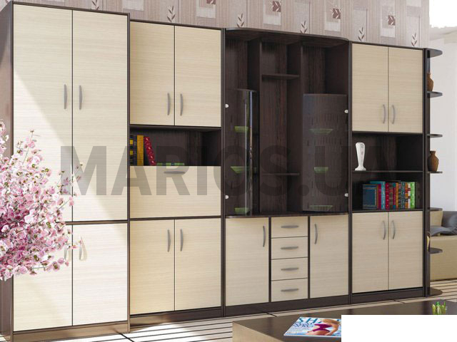 50.00см x 366.00см x 206.50см Характеристики мебели Материал ЛДСП. Гостиная Магнат Изготавливается в цветах: венге магия/маккасар; венге магия/венге светлое; венге магия/зебрано - африканское. Состоит из шкафа для одежды, бара, витрины, секции для белья и двумя подставками, есть место для телевизора. Материал: ЛДСП. Размеры: (Ш/В/Г) - 366/206.5/50 см.