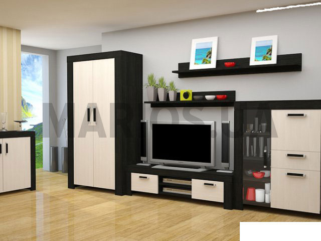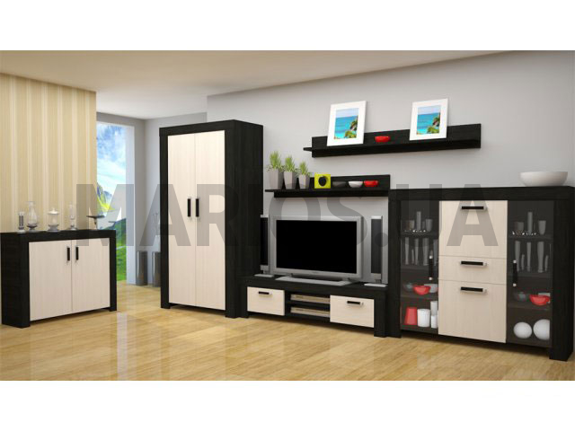 Характеристики мебели Материал ДСП, МДФ Гостиная Prime-2. Все элементы гарнитура изготовлены из ламинированной плиты ДСП толщиной 16мм, плиты МДФ 19мм, кромка - ABS 0,45 мм. На дверях установлен механизм плавного закрывания. Ручки - деревянные. Цвет: венге магия/анжелик. Состоит из: Буфет Prime 7: длина - 130 см; глубина - 41,7 см; высота - 130 см. Тумба ТВ Prime 14: длина - 170 см; глубина - 51,7 см; высота - 50 см. Комод Prime 12: длина - 120 см; глубина - 41,7 см; высота - 84 см. Полка навесная Prime 26: длина - 130 см; глубина - 17,6 см; высота - 20 см. Полка навесная Prime 25: длина - 100 см; глубина - 17,6 см; высота - 20 см. Шкаф Prime 2: длина - 100 см; глубина - 60 см; высота - 200 см.